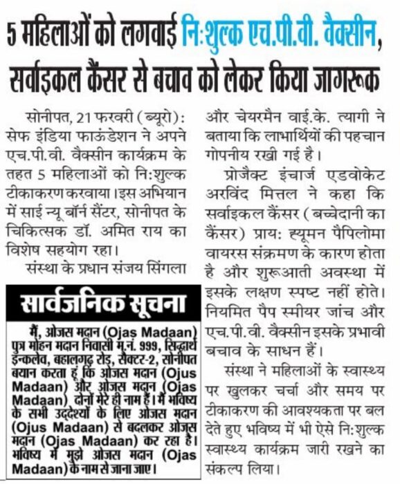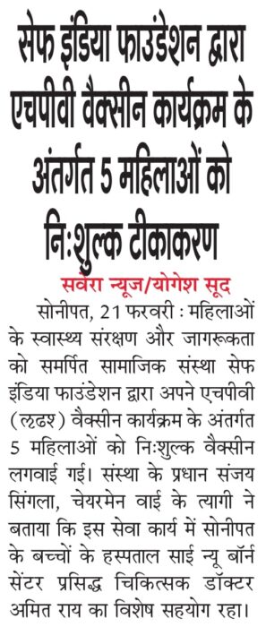 07/02/26 को बधिर स्कूल सोनीपत में सेफ इंडिया फाउंडेशन एवं रोट्रेक्ट क्लब ऑफ अशोका यूनिवर्सिटी राई द्वारा बच्चों का हुनर स्किल डेवलपमेंट अभियान